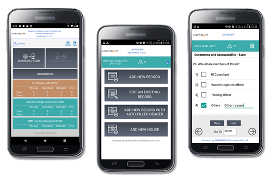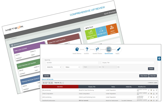 A Web and Mobile application developed by PARAMARSH. The striking feature of this software is that it allows organizations to conduct surveillance and monitoring activities with the help of mobile devices. Equipped with a powerful Dynamic Questionnaire Builder, the tool provides the capability of capturing and processing of data (survey results) in real-time for analysis and reporting.